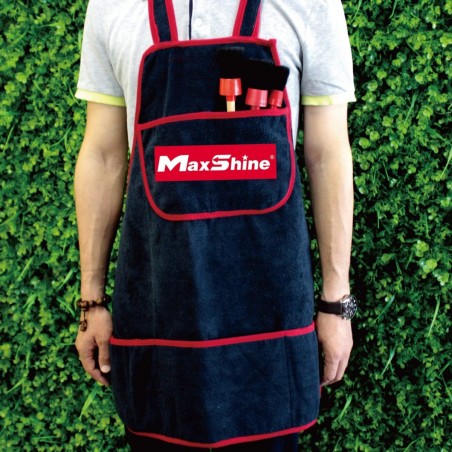 Around 10 inch wide deep pockets that are perfect for containing detailing tools, polishing pads, detailing clay, foam applicator, or anything necessary while detailing.This large, comfortable microfiber apron keeps your clothes clean while you work, and the microfiber is soft against your vehicle.